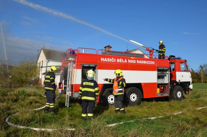 Okrskové cvičení hasičů - Požár vepřína ve Štítarech, 14. 10. 2017